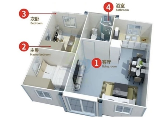 可加做底部支架支撑、带露台带屋顶,阳台栏杆,肯德基双开门,室内带厨房、卫生间等配置,做度假村